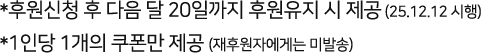 • *후원신청 후 다음 달 20일까지 후원유지 시 제공 (25.12.12 시행)