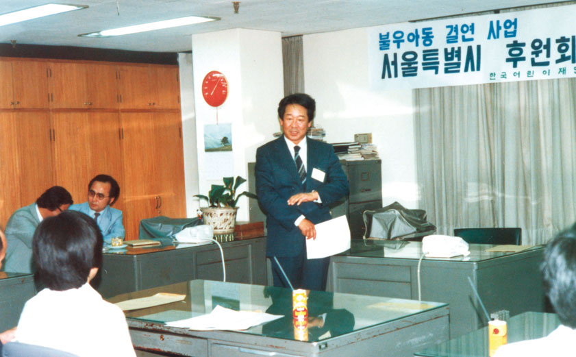 이를 시작으로 1984년에는 해외 최초로 워싱턴후원회가, 1985년에는 최불암 전국후원회장을 필두로 한 전국후원회가 결성되었습니다. 1999년 울산후원회까지 전국 16개 시·도 지부 후원회가 모두 구성된 가운데, 후원자-아동 만남의 날, 자체 후원행사 진행 등 보다 적극적이고 새로운 모금 활동을 전개하였습니다. 2011년 전국후원회 주최로 후원자 배가를 위한 열나눔 캠페인을 진행하여 2,160명의 후원자를 개발하였으며, 현재까지 각 지역에서 초록우산 사업을 대외에 알리고 새로운 후원자를 참여시키는 데에 큰 역할을 수행하고 있습니다.
